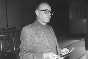 Ernst Jandl, geb. 1925 in Wien, gest. 2000 ebenda. Der Autor von Gedichten, Prosa, Hörspielen und Theaterstücken wurde mit experimenteller Lyrik in der Tradition Konkreter Poesie und durch seine intensiven Lesungen vor großem Publikum bekannt. Gerne arbeitete der Dichter auch mit Jazz-Musikern zusammen.