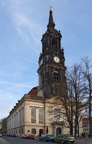 Der Turm der protestantischen Dreikönigskirche ist 87,5 Meter hoch und weithin sichtbar. Die Kirche steht im historischen Zentrum der Inneren Neustadt.Bereits im 15. Jahrhundert bestand eine Kirche an dieser Stelle, die nach wiederholten Zerstörungen mehrfach neu gebaut wurde. Zwischen 1732 und 1739, als der Neustädter Teil der Residenz nach einheitlicher Planung umgeformt wurde, entstand der heutige Kirchenbau nach Entwürfen von M. D. Pöppelmann, G. Bähr und J. G. Fehre.